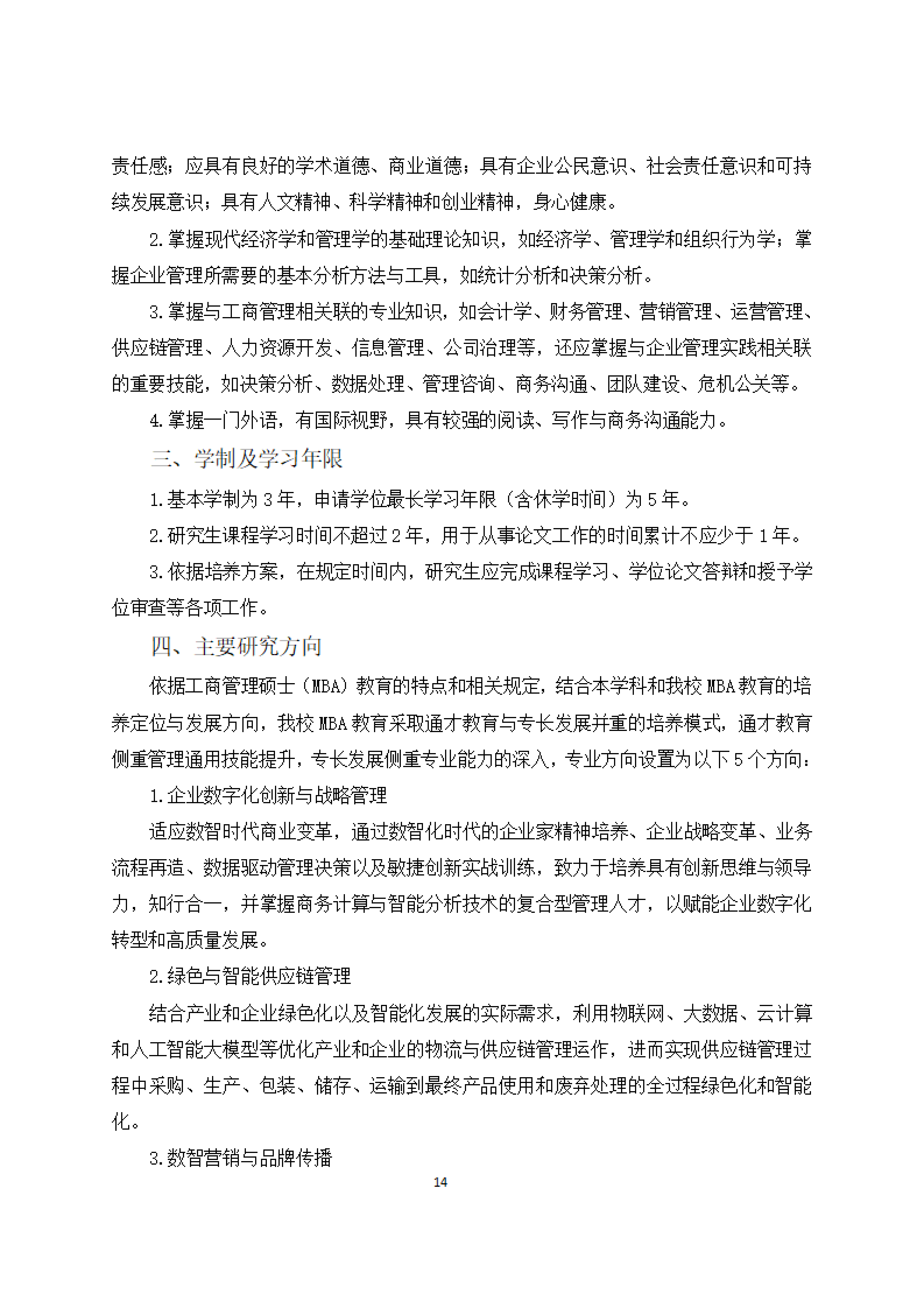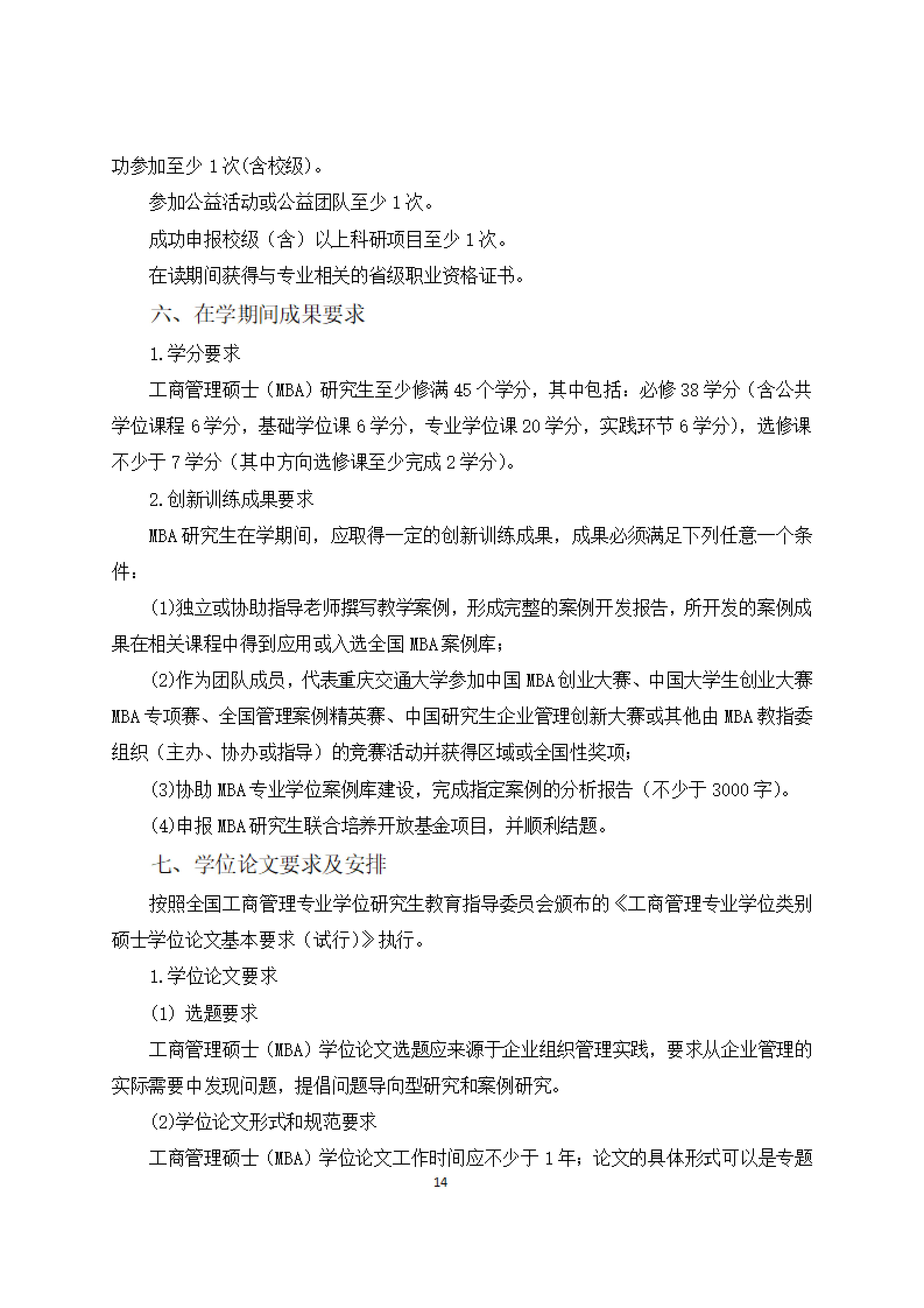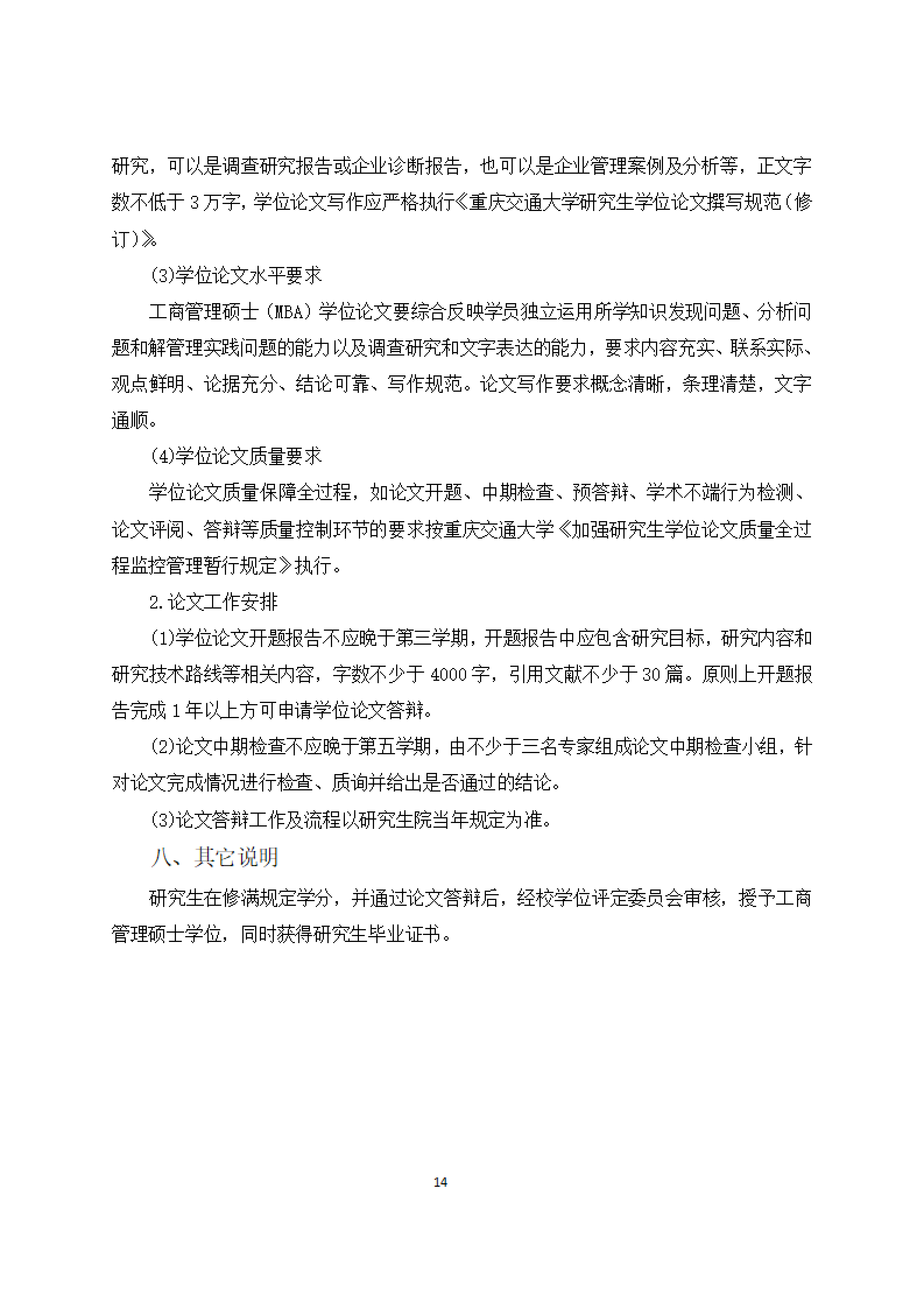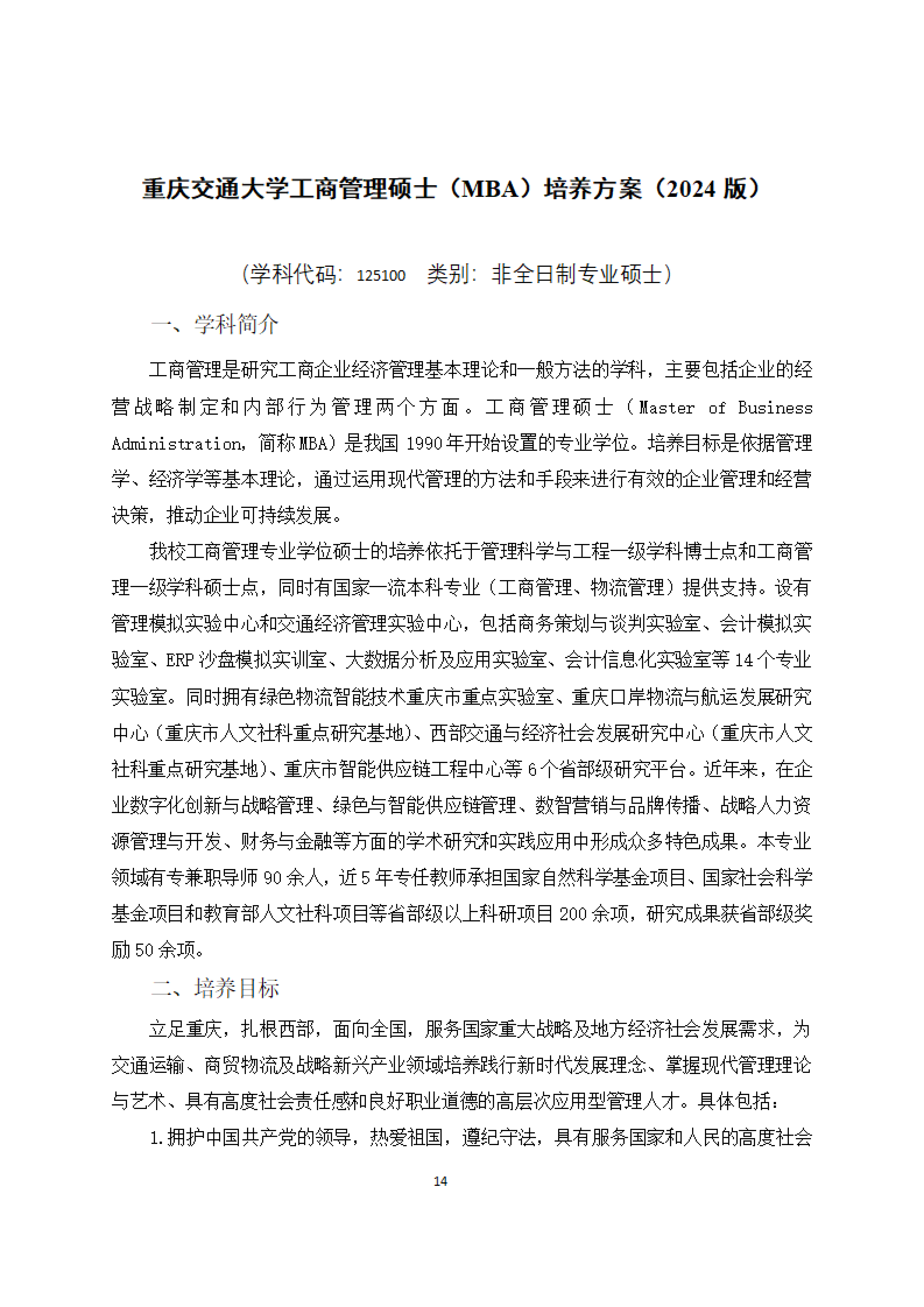 重庆交通大学工商管理硕士(MBA)培养方案(2024版)