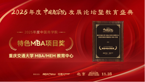 “成渝双城经济圈建设MBA项目”获评“2025年度中国商学院特色MBA项目奖”,彰显重庆交通大学MBA项目在服务国家区域重大战略、推动科教融合与产业协同发展方面的独特价值。